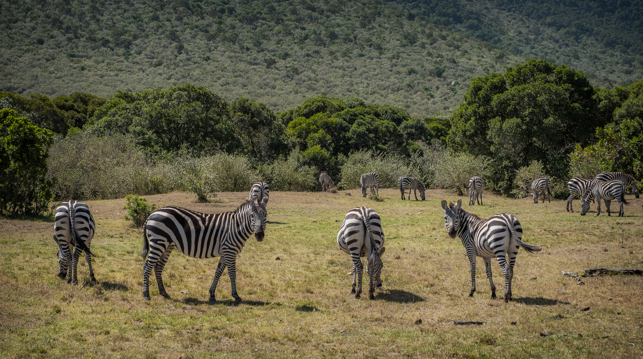 About halfway to the river, the girls see giraffes and zebras in the distance, grazing in the grassland ahead. Suddenly a herd of gazelles race by. Are they racing each other or racing away from danger?